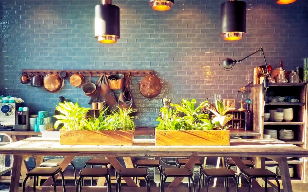I locali gastronomici di nuova apertura, o quelli che hanno voluto cambiare volto nell’ultimo periodo, si sono spesso affidati ad uno stile ricorrente: il cosiddetto Urban Chic. Questa tendenza di progettazione e d’arredo si ispira ad atmosfere cittadine ed industriali ed è una declinazione più specifica a caratterizzata del macro-stile moderno. Caratterizzano questo stile, la scelta di colori neutri per pareti e pavimenti, ma con sprazzi di colore accesi nell’arredamento: il grigio del metallo e il colore neutro del legno entrano in contrasto con una poltrona di pelle color cammello e una coperta gialla.